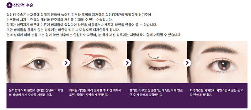 보이거나 피곤해 보이는 인상을 줄 수 있습니다. 이때 도움을 줄 수 있는 방법이 바로 상안검 수술입니다.