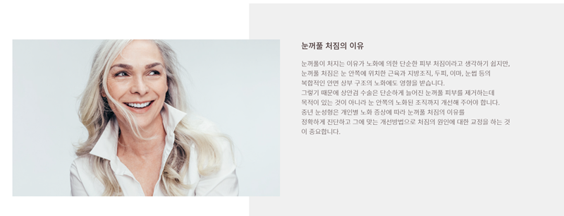 나이가 들면서 가장 먼저 티 나는 부위가 바로 눈가입니다. 눈꺼풀 피부는 얇고 민감하기 때문에 쉽게 늘어지고, 이로 인해 눈이 작아